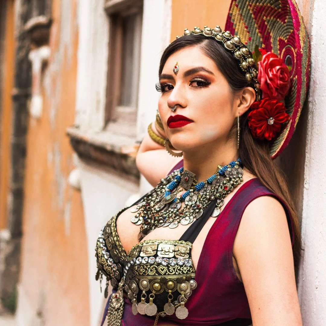 Chris Alemán is a dedicated dancer and teacher with over a decade of experience in the Tribal Bellydance scene of Mexico City. Her journey began in 2014 under the mentorship of Walky Ardaat, whose influence helped shape her passion for group improvisation and expressive elements such as sword, fan, and skirtwork. She has shared the stage with international artists including Wendy Allen, Kae Montgomery, Wild Card Bellydance, and Beats Antique, and continues to deepen her artistry through training with leading figures in the global tribal community.